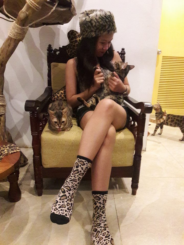 I love the ambiance! The view of the place of cats is just like a mini jungle for Bengals! From the ceiling up to the walls, it’s perfectly designed. Each corner is a photo opportunity, of course! You may also use the free hat with its Bengal design, and slippers are also provided for free.